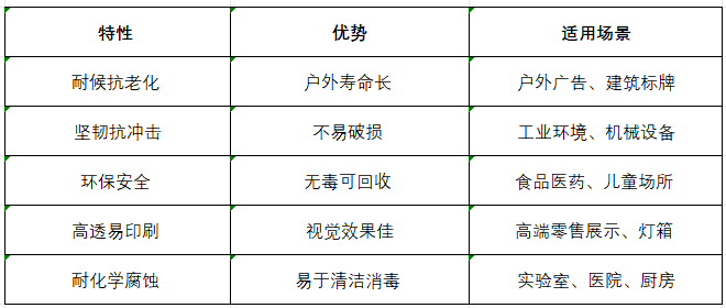 與常見材料(如PVC、亞克力)的簡單對比: